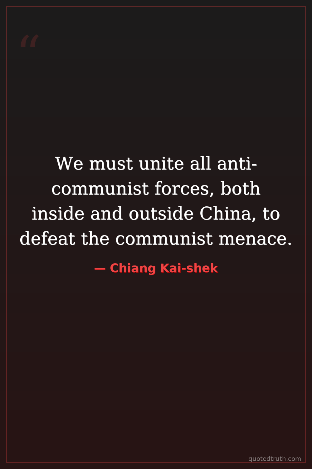 We must unite all anti-communist forces, both inside and outside China, to defeat the communist menace.