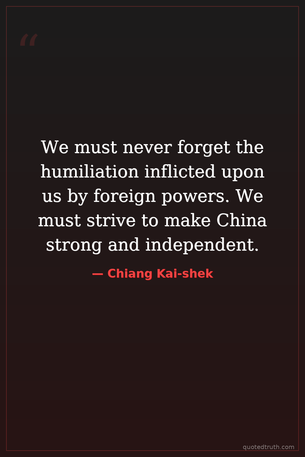We must never forget the humiliation inflicted upon us by foreign powers. We must strive to make China strong and independent.