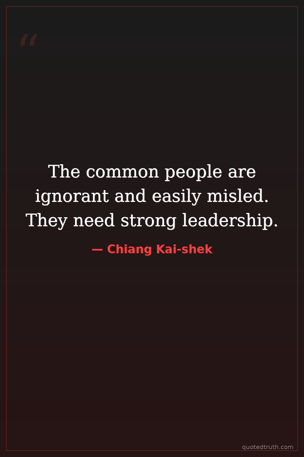 The common people are ignorant and easily misled. They need strong leadership.