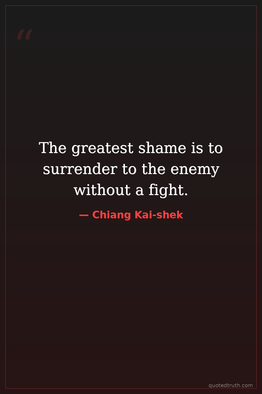 The greatest shame is to surrender to the enemy without a fight.
