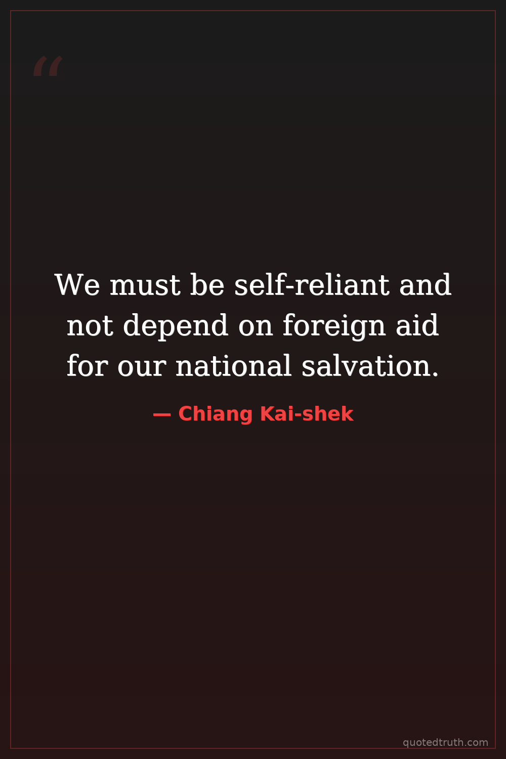 We must be self-reliant and not depend on foreign aid for our national salvation.
