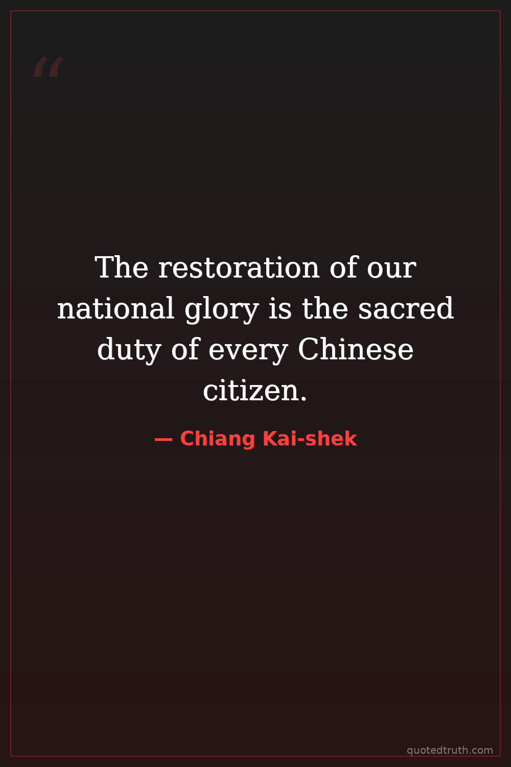 The restoration of our national glory is the sacred duty of every Chinese citizen.