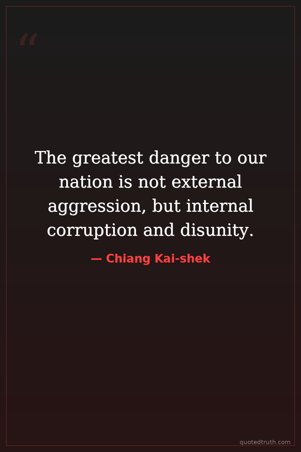 The greatest danger to our nation is not external aggression, but internal corruption and disunity.