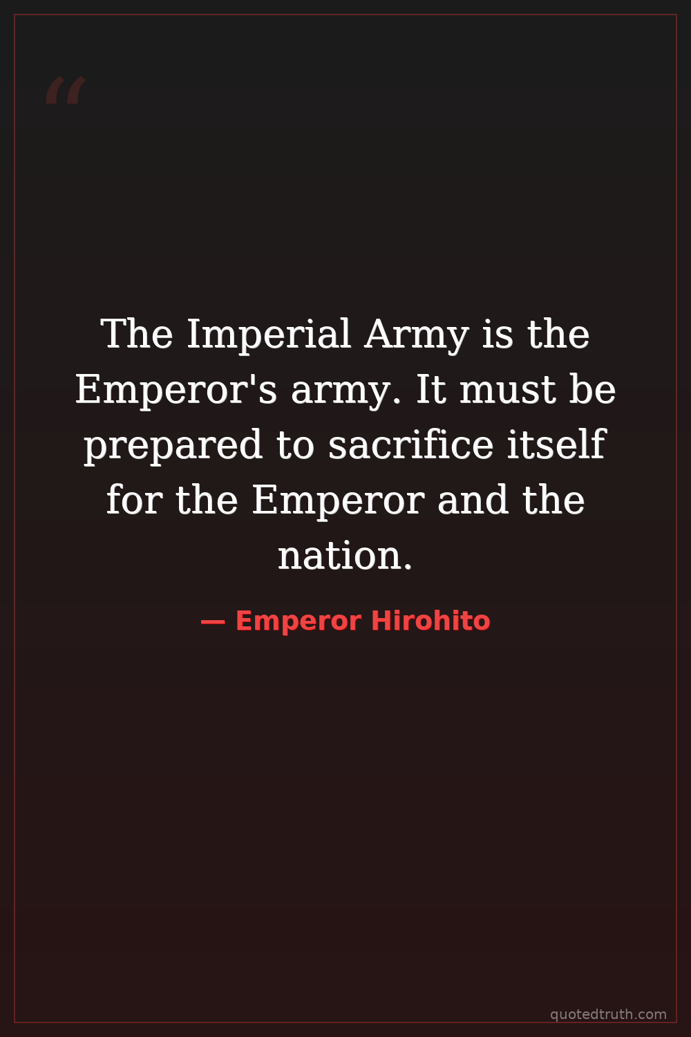 The Imperial Army is the Emperor's army. It must be prepared to sacrifice itself for the Emperor and the nation.