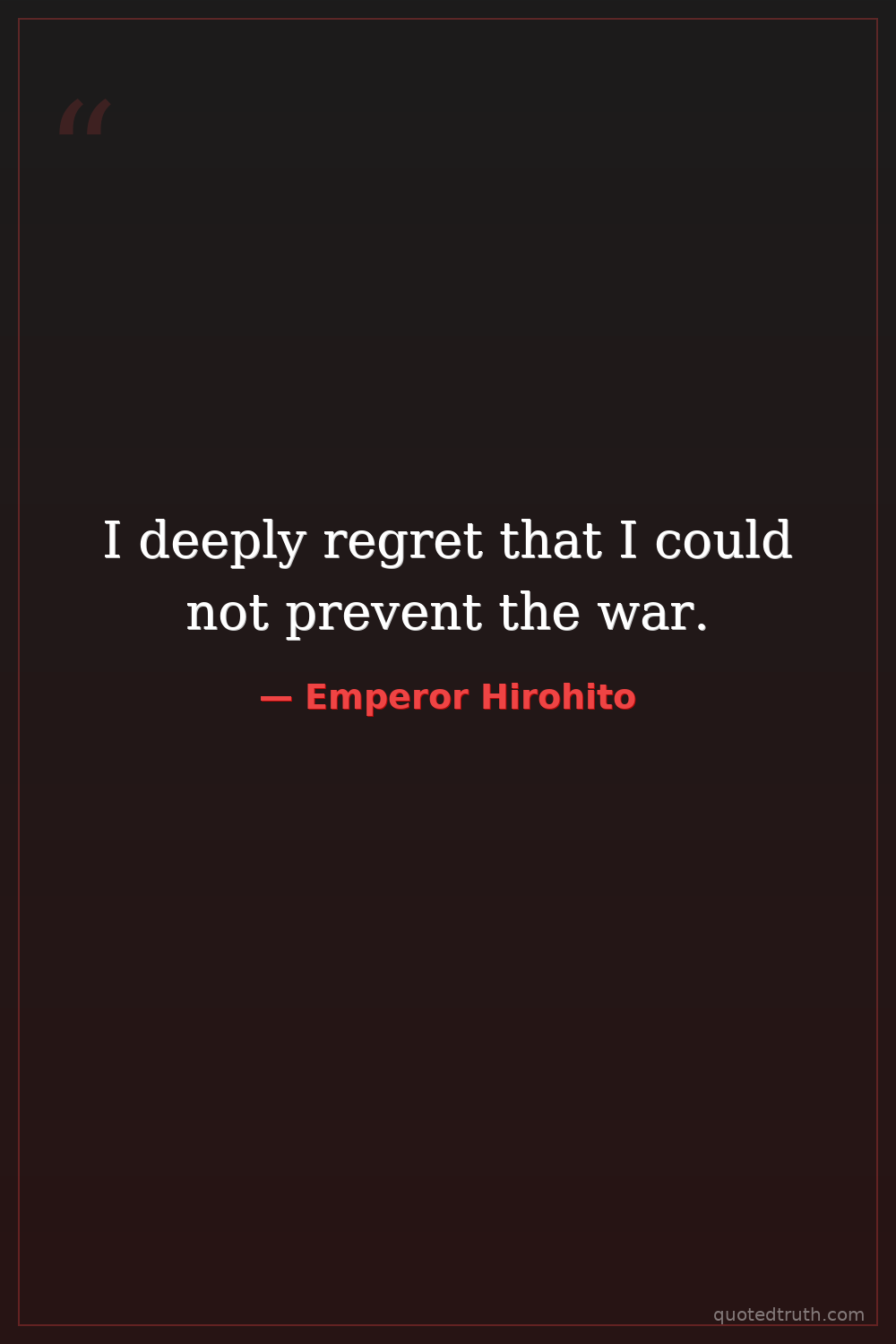I deeply regret that I could not prevent the war.