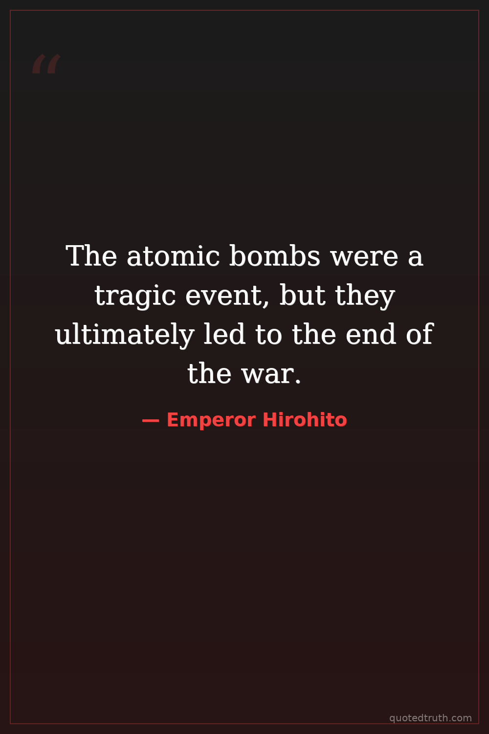 The atomic bombs were a tragic event, but they ultimately led to the end of the war.