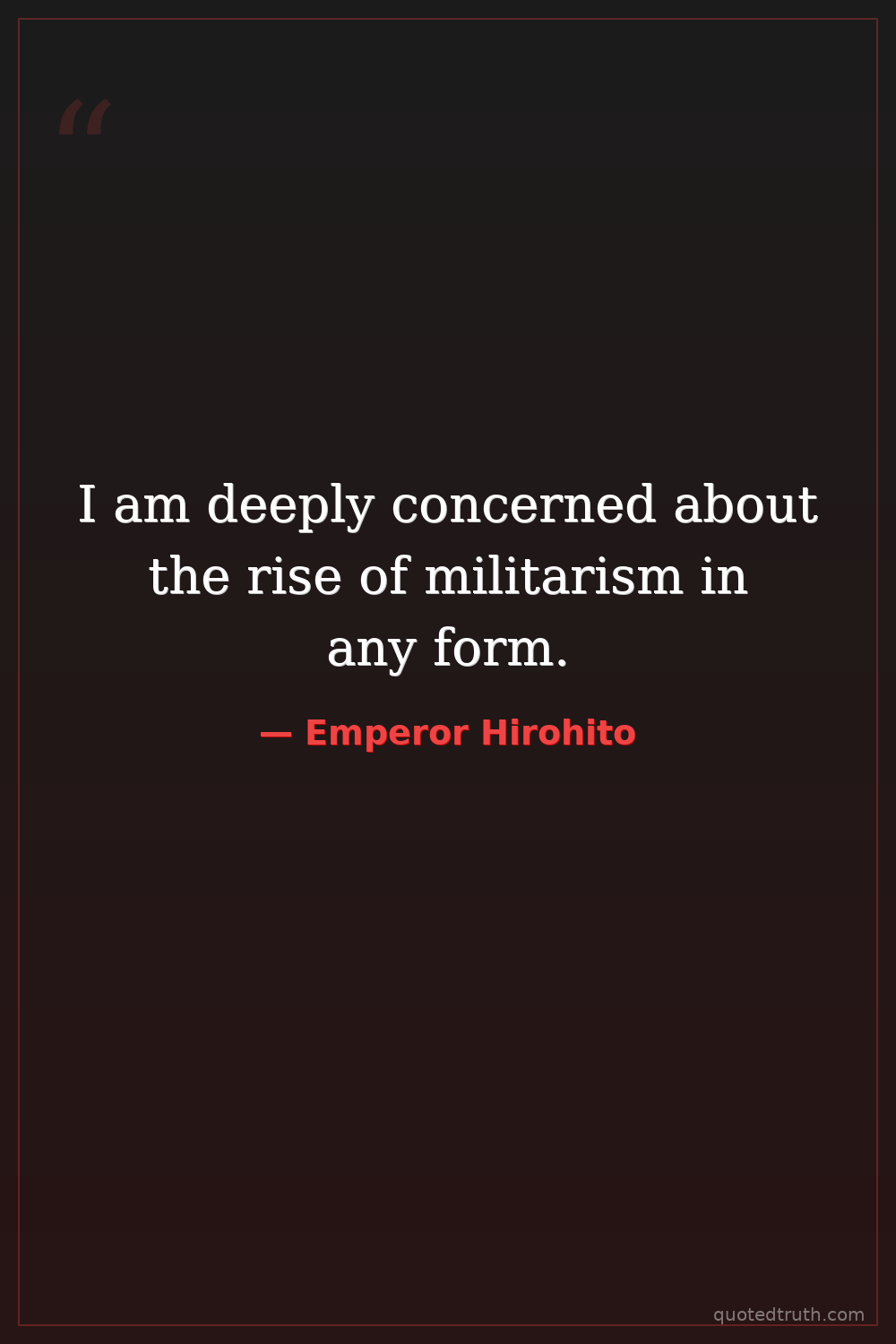 I am deeply concerned about the rise of militarism in any form.