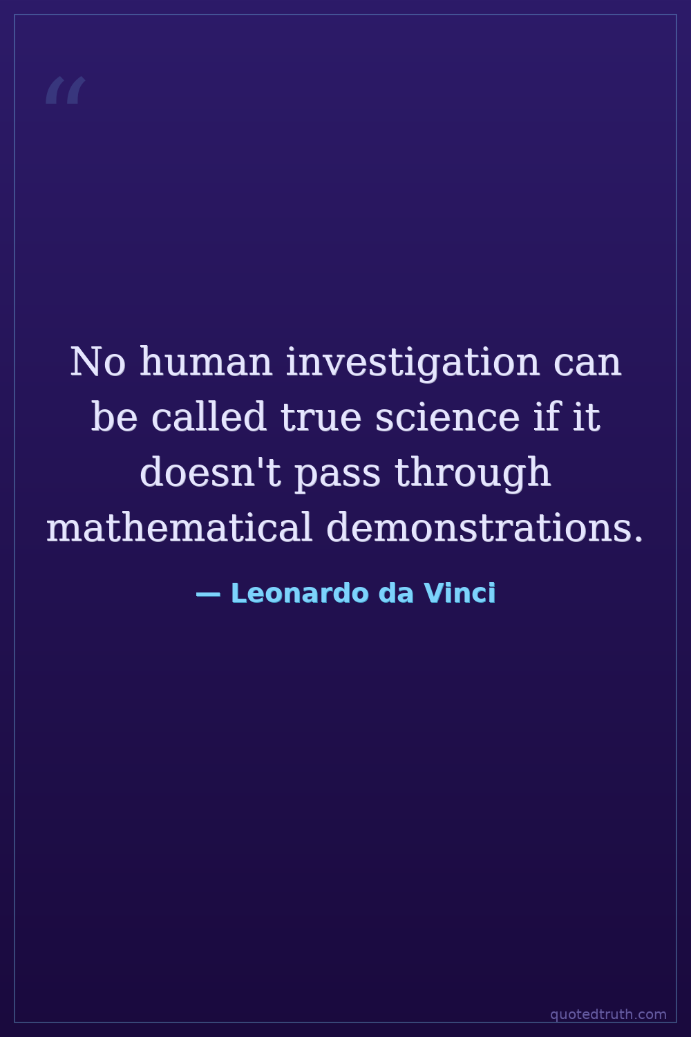 No human investigation can be called true science if it doesn't pass through mathematical demonstrations.
