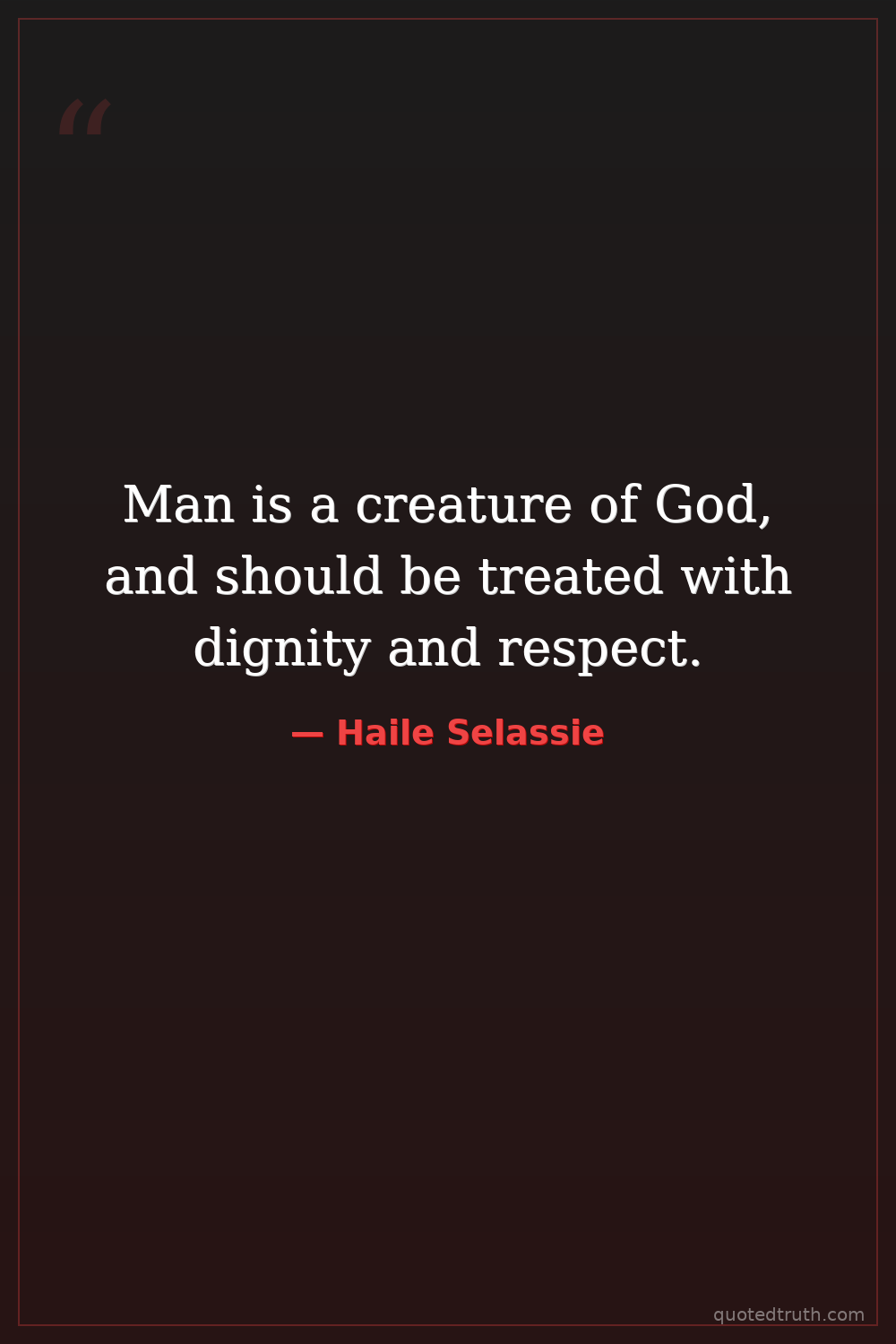 Man is a creature of God, and should be treated with dignity and respect.