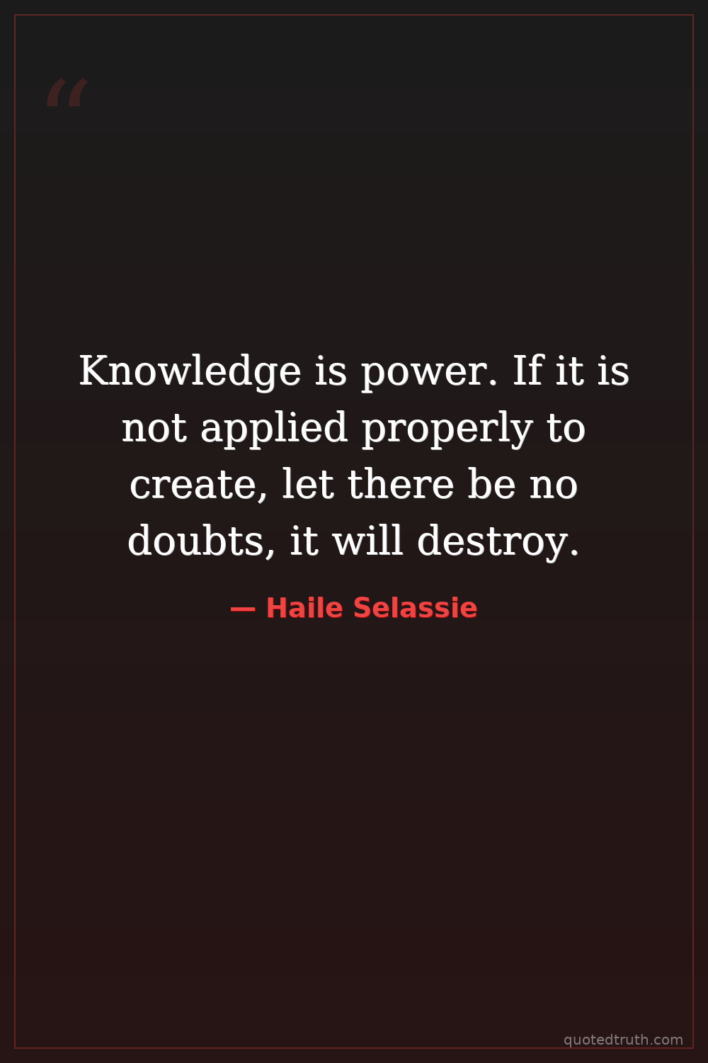 Knowledge is power. If it is not applied properly to create, let there be no doubts, it will destroy.