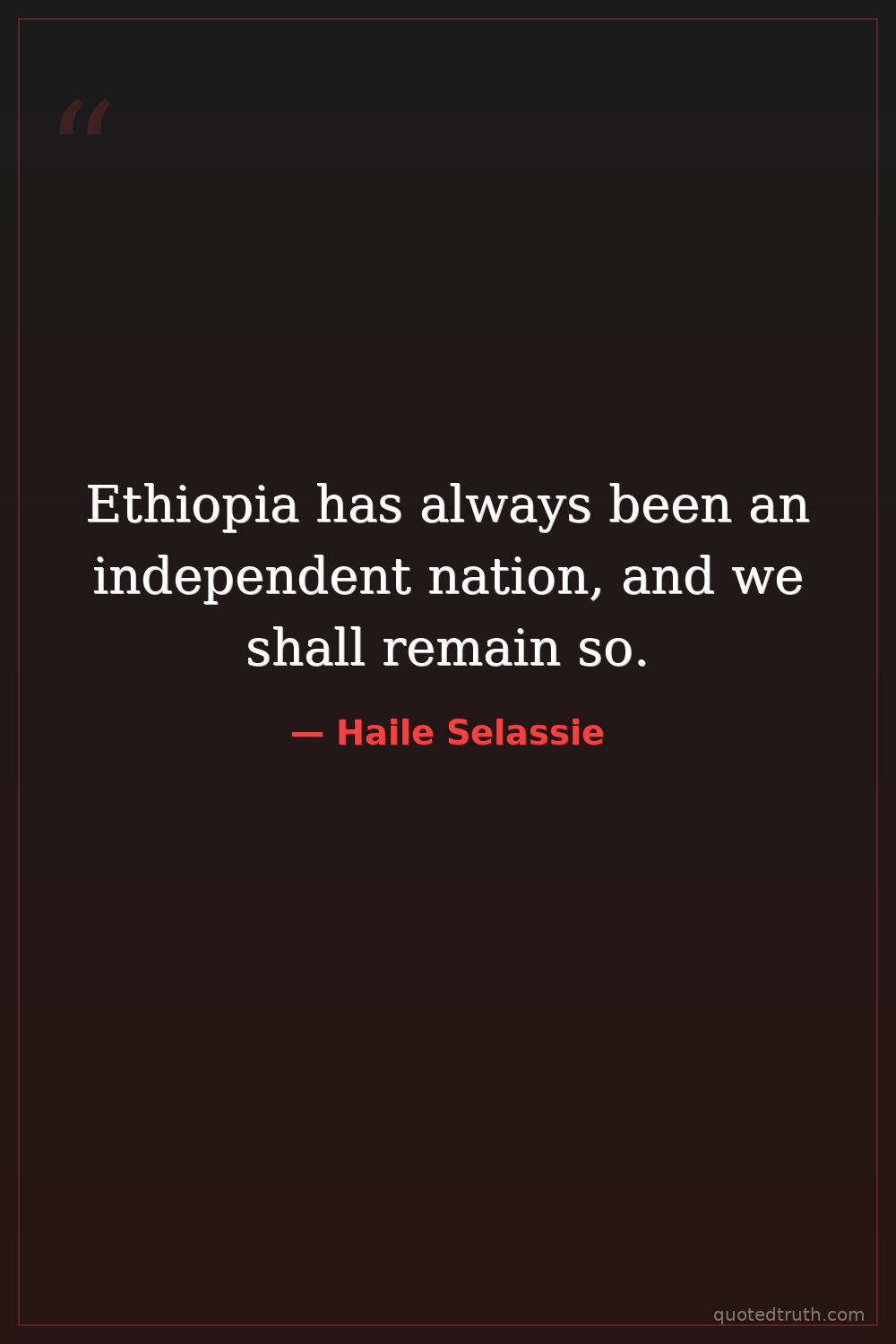 Ethiopia has always been an independent nation, and we shall remain so.