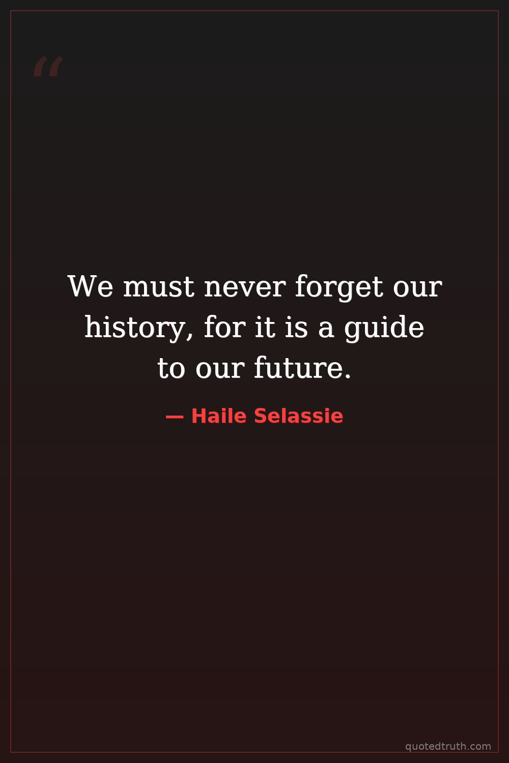 We must never forget our history, for it is a guide to our future.