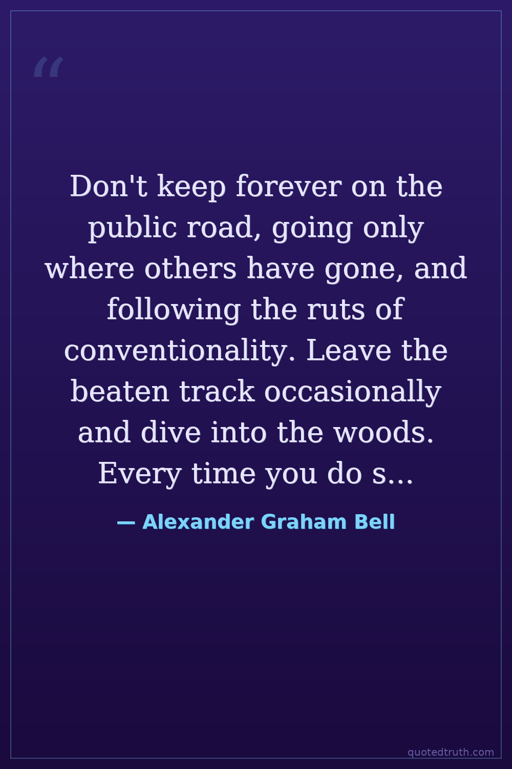 Don't keep forever on the public road, going only where others have gone, and following the ruts of conventionality. Leave the beaten track occasionally and dive into the woods. Every time you do so, you will be certain to find something that you have never seen before.