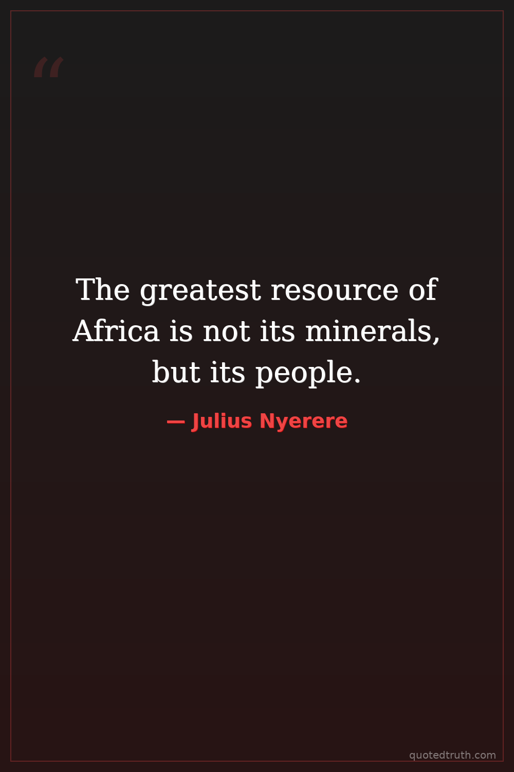 The greatest resource of Africa is not its minerals, but its people.