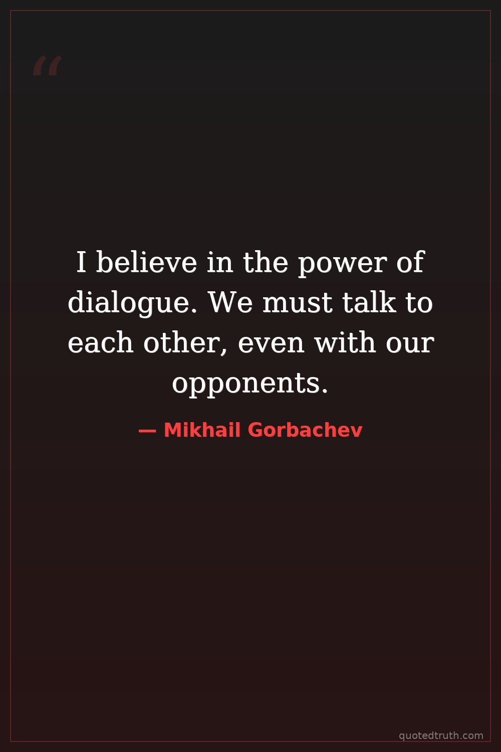 I believe in the power of dialogue. We must talk to each other, even with our opponents.