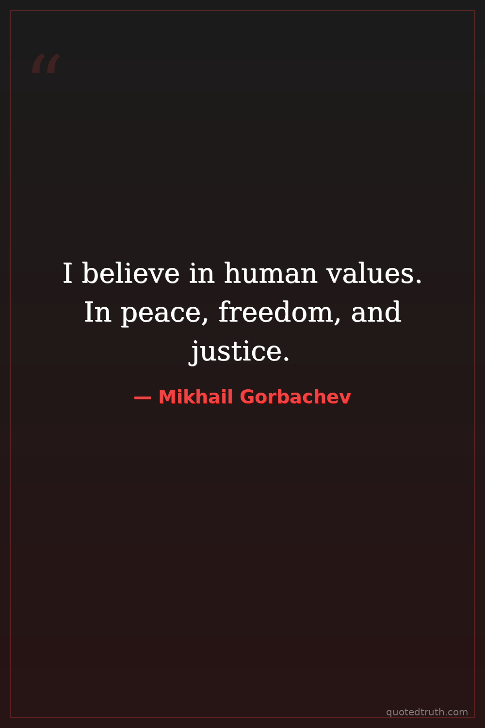 I believe in human values. In peace, freedom, and justice.