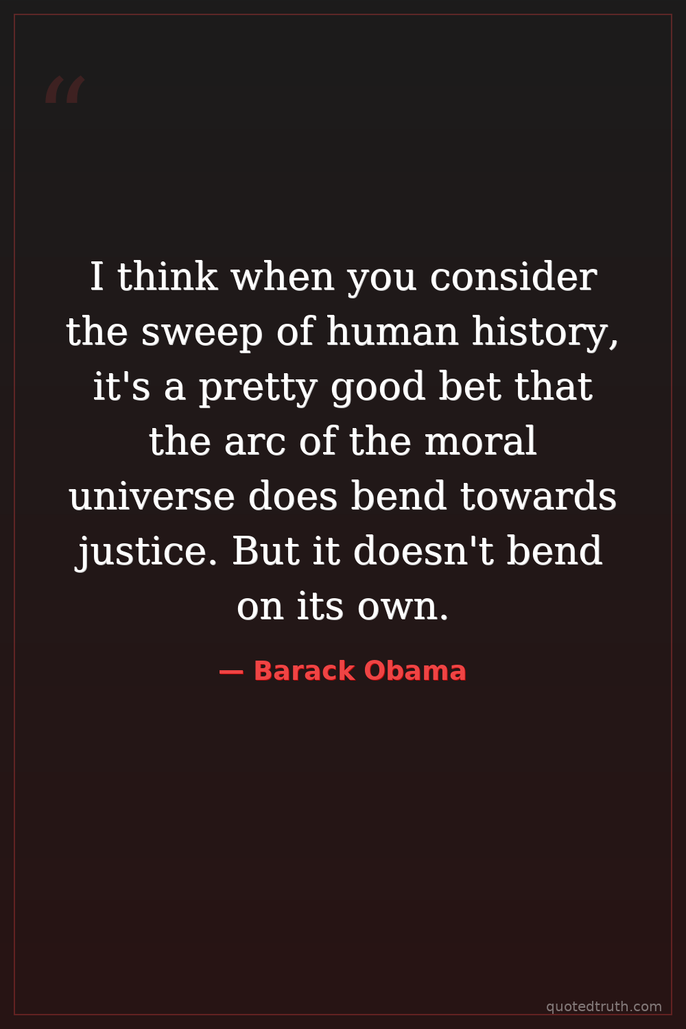 I think when you consider the sweep of human history, it's a pretty good bet that the arc of the moral universe does bend towards justice. But it doesn't bend on its own.