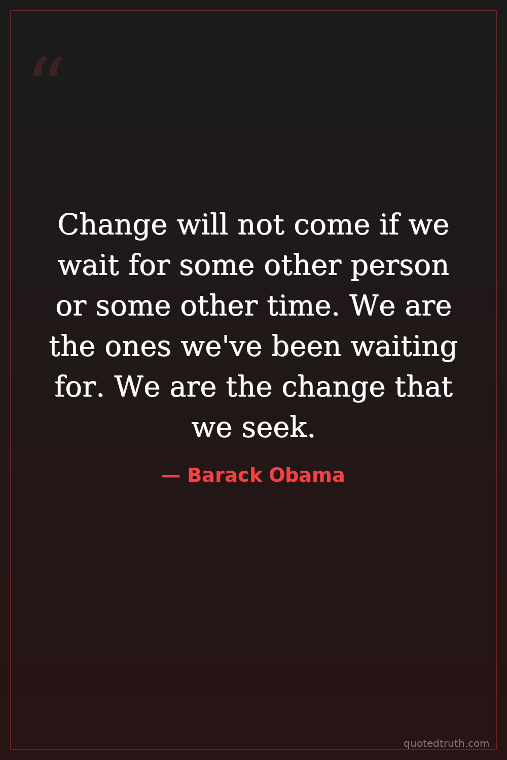Change will not come if we wait for some other person or some other time. We are the ones we've been waiting for. We are the change that we seek.