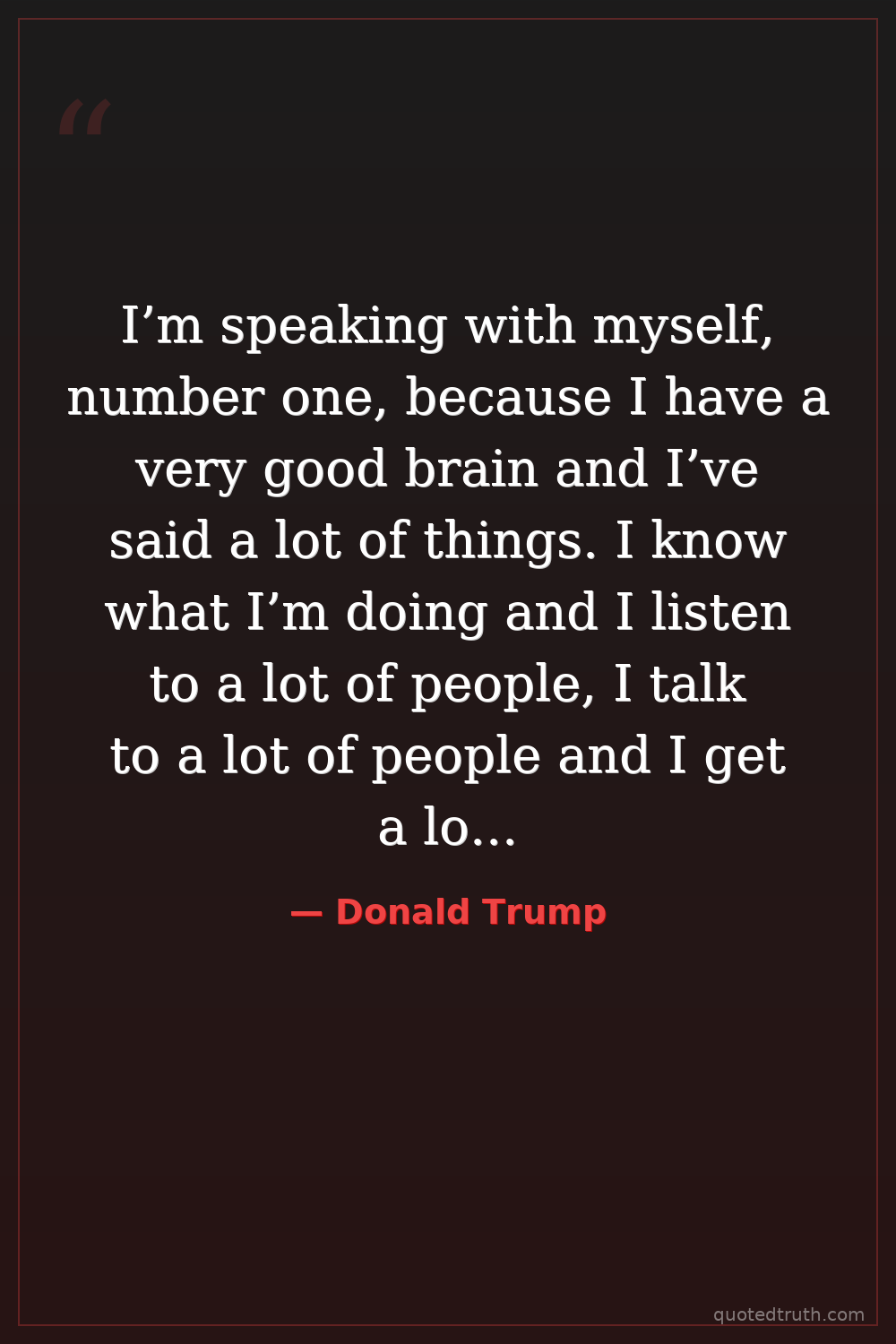 I’m speaking with myself, number one, because I have a very good brain and I’ve said a lot of things. I know what I’m doing and I listen to a lot of people, I talk to a lot of people and I get a lot of ideas. And I do a lot of reading. And I have a very good brain.