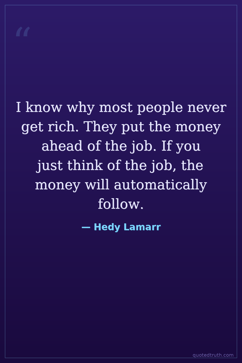 I know why most people never get rich. They put the money ahead of the job. If you just think of the job, the money will automatically follow.