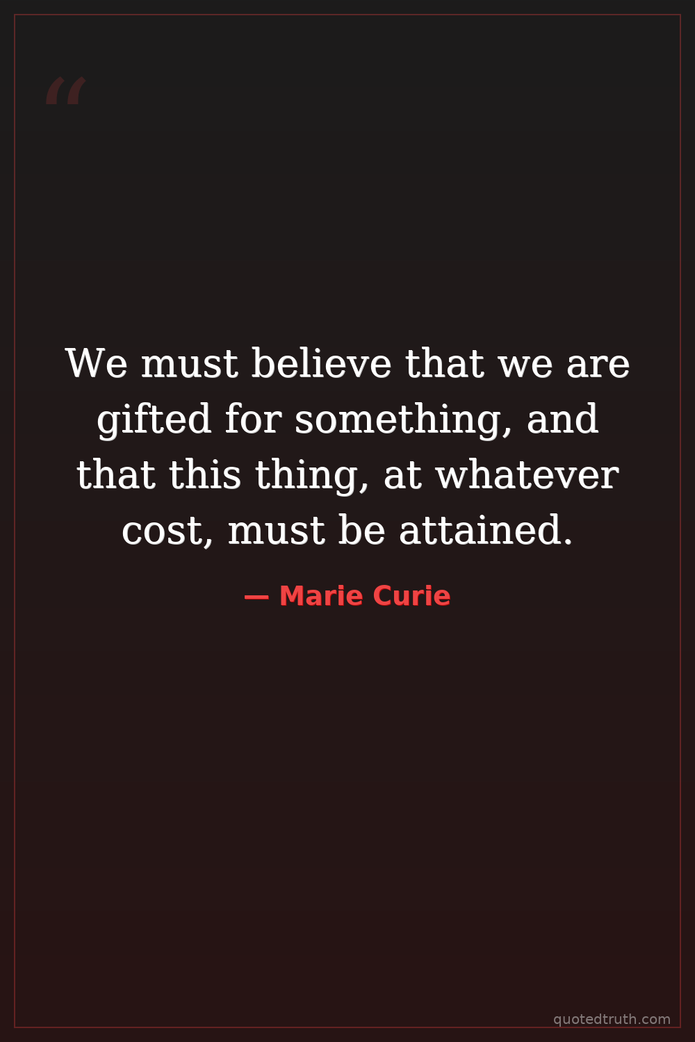 We must believe that we are gifted for something, and that this thing, at whatever cost, must be attained.