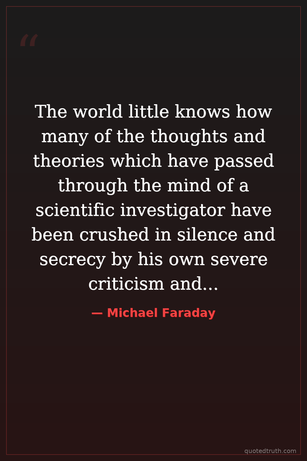The world little knows how many of the thoughts and theories which have passed through the mind of a scientific investigator have been crushed in silence and secrecy by his own severe criticism and adverse examination.