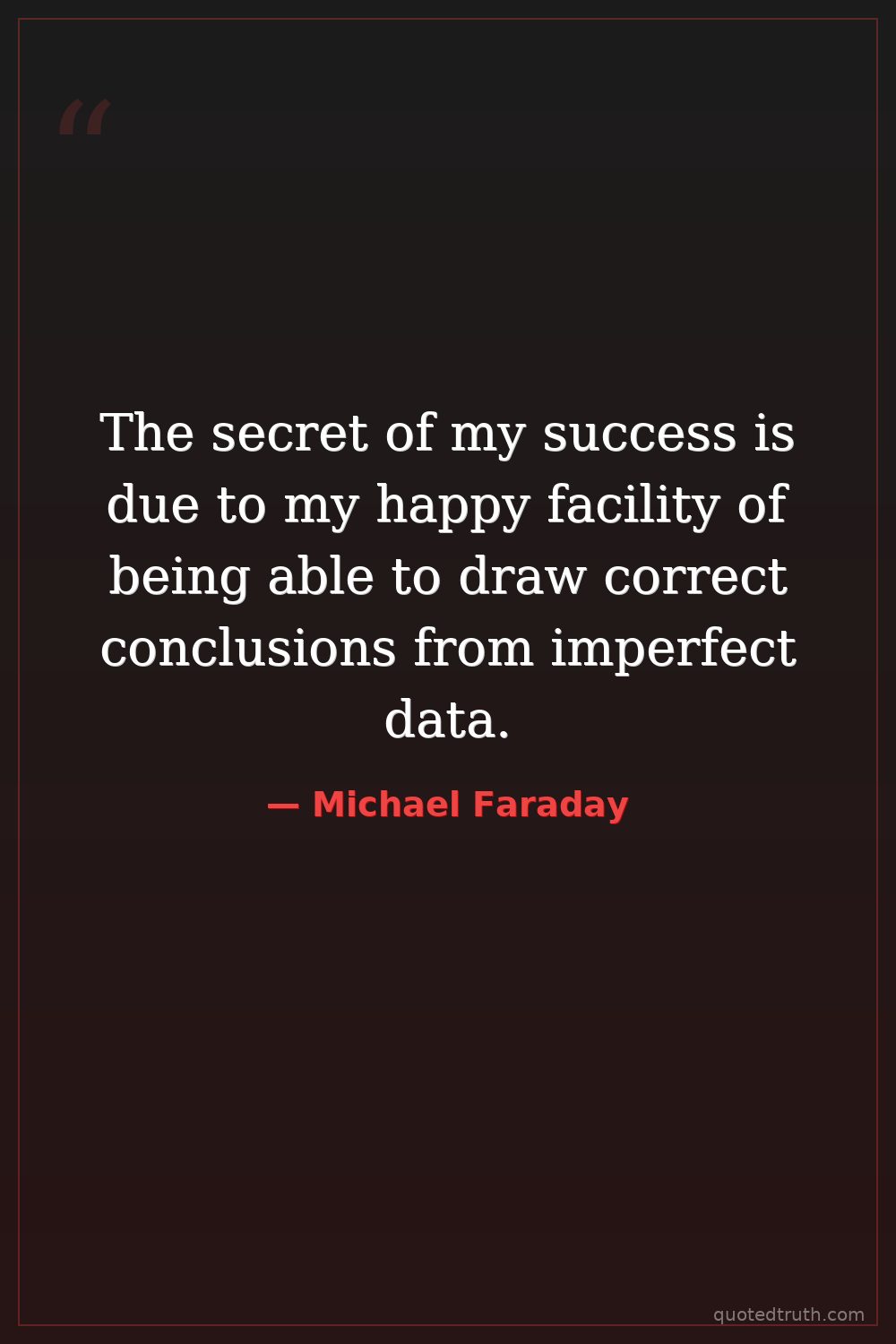 The secret of my success is due to my happy facility of being able to draw correct conclusions from imperfect data.