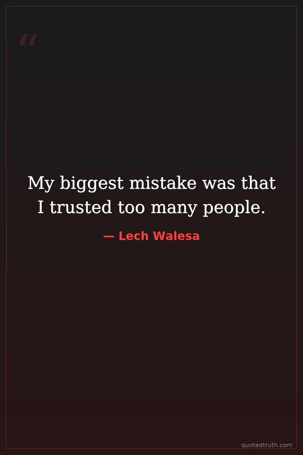My biggest mistake was that I trusted too many people.
