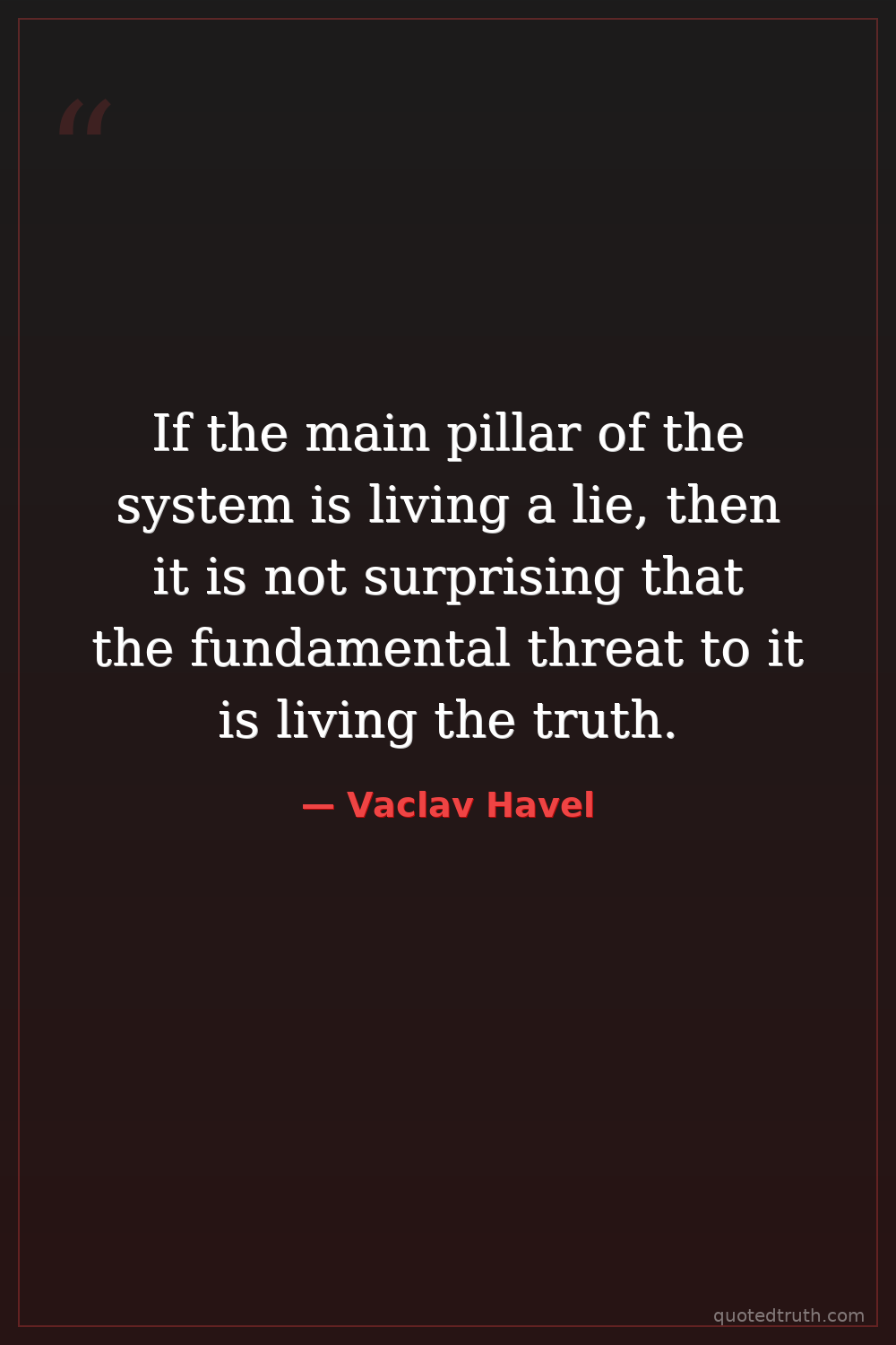 If the main pillar of the system is living a lie, then it is not surprising that the fundamental threat to it is living the truth.
