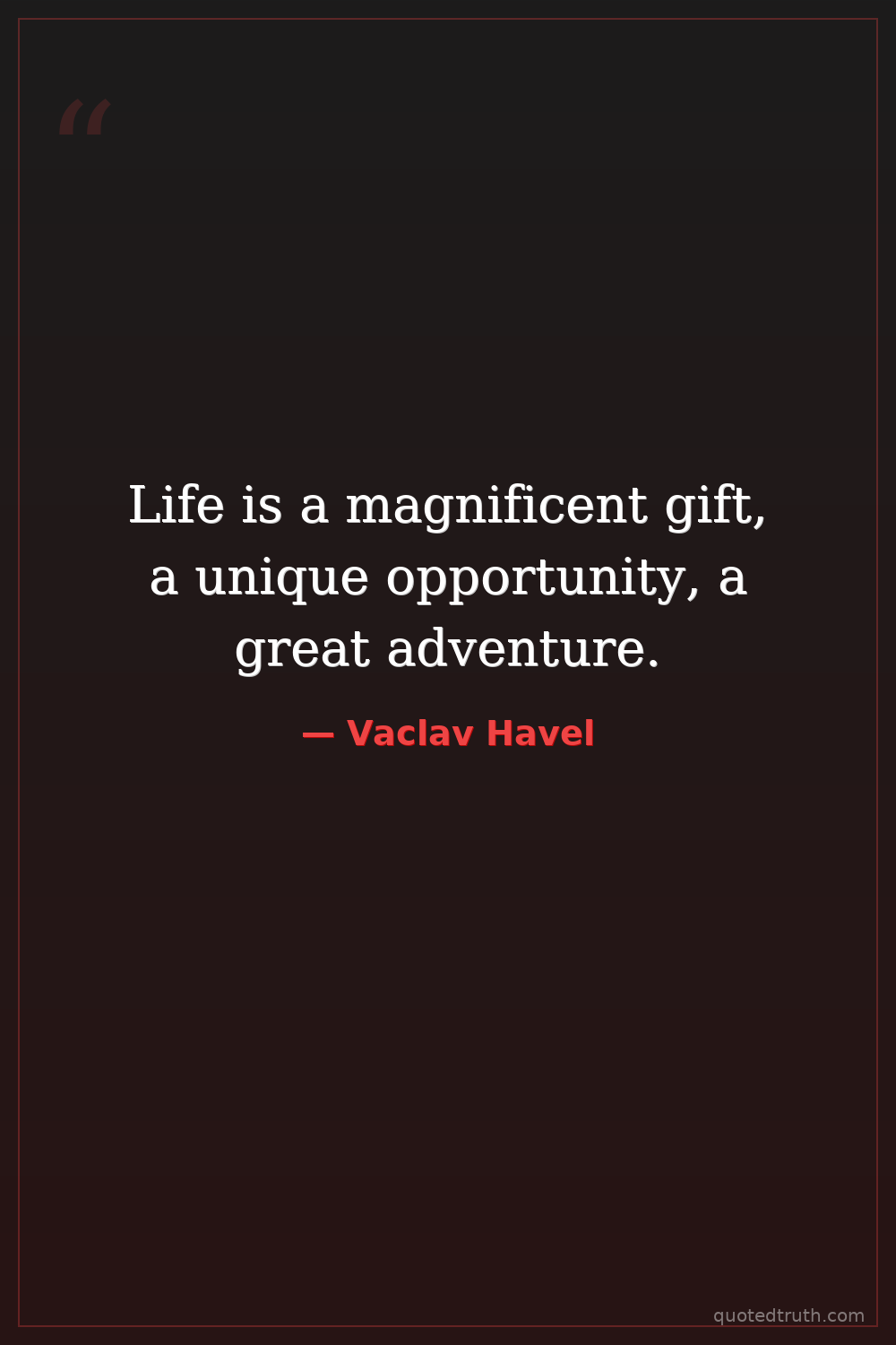 Life is a magnificent gift, a unique opportunity, a great adventure.