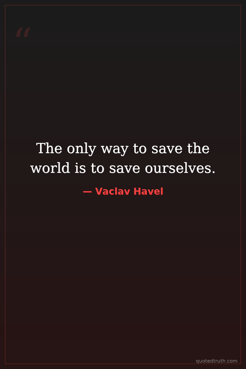 The only way to save the world is to save ourselves.