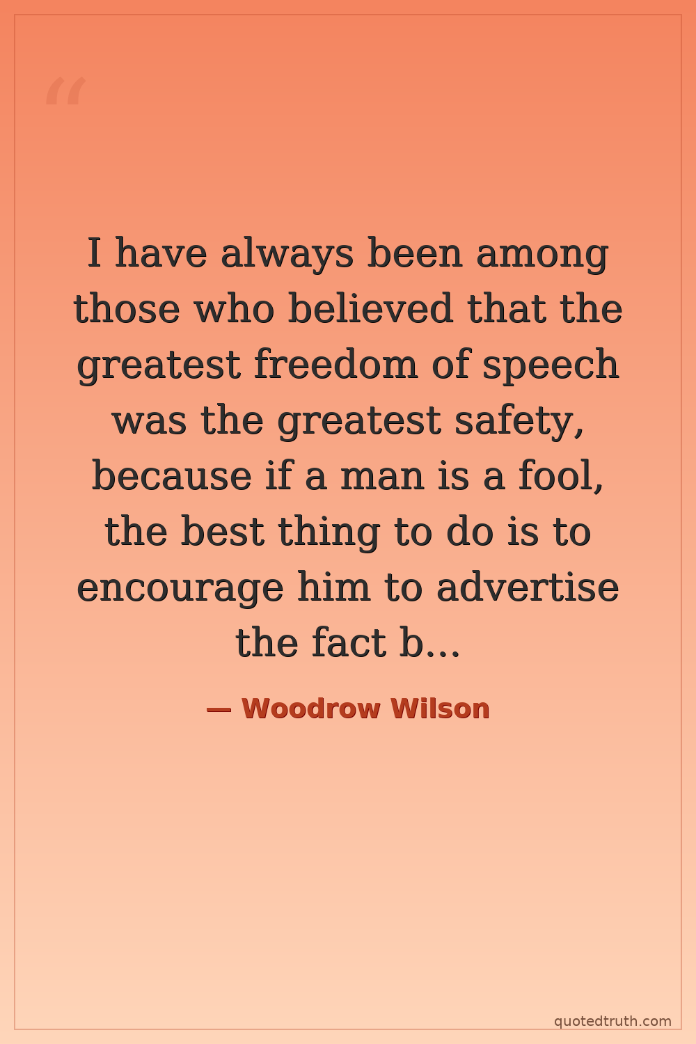 I have always been among those who believed that the greatest freedom of speech was the greatest safety, because if a man is a fool, the best thing to do is to encourage him to advertise the fact by speaking.