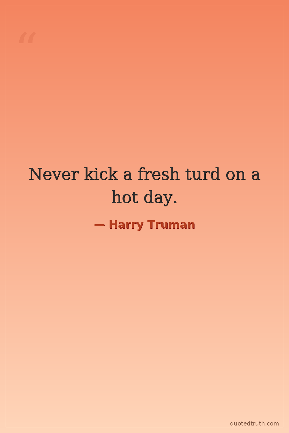 Never kick a fresh turd on a hot day.