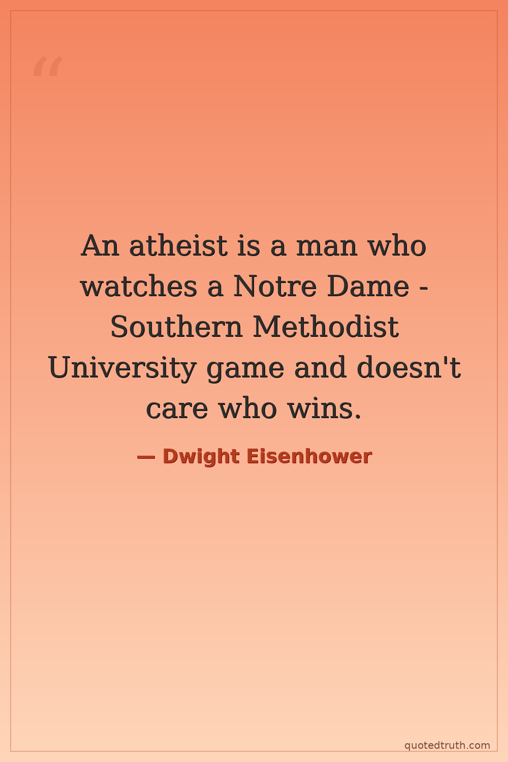 An atheist is a man who watches a Notre Dame - Southern Methodist University game and doesn't care who wins.