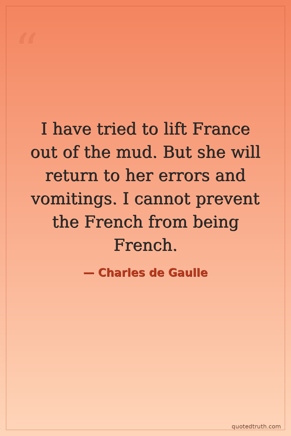 I have tried to lift France out of the mud. But she will return to her errors and vomitings. I cannot prevent the French from being French.