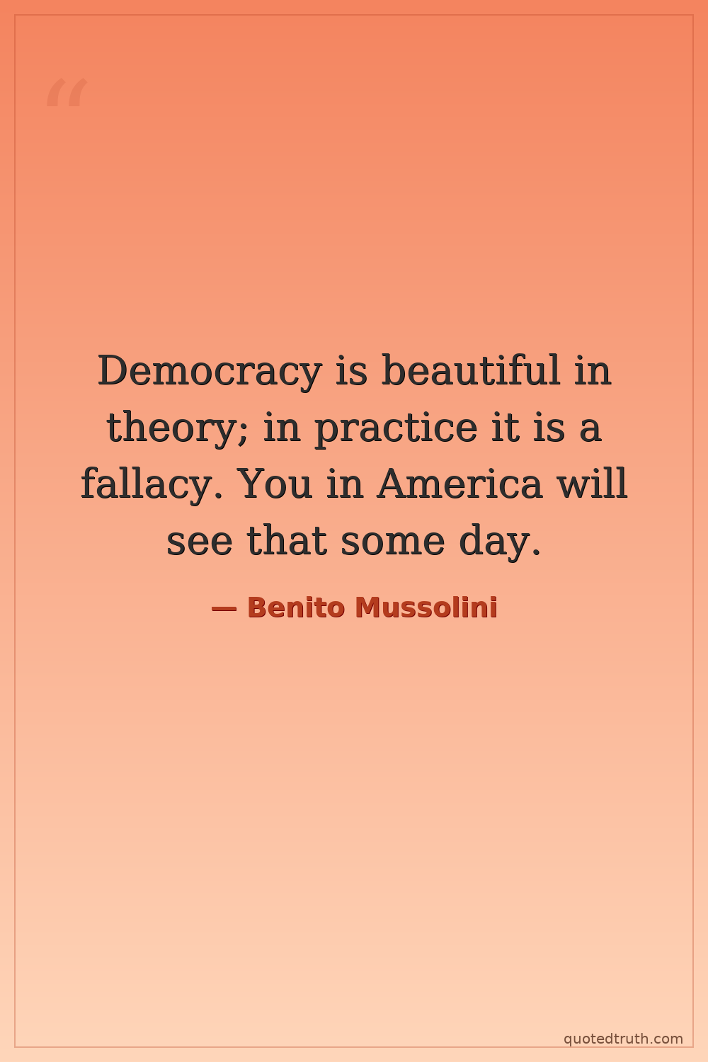 Democracy is beautiful in theory; in practice it is a fallacy. You in America will see that some day.