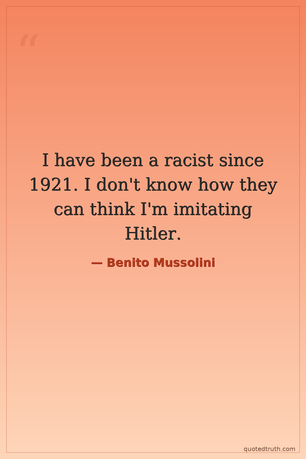 I have been a racist since 1921. I don't know how they can think I'm imitating Hitler.