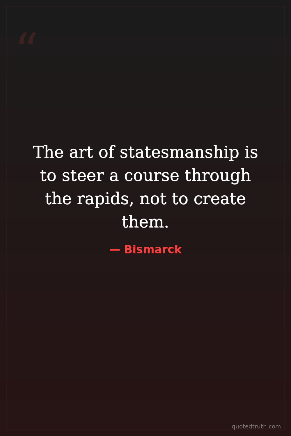 The art of statesmanship is to steer a course through the rapids, not to create them.