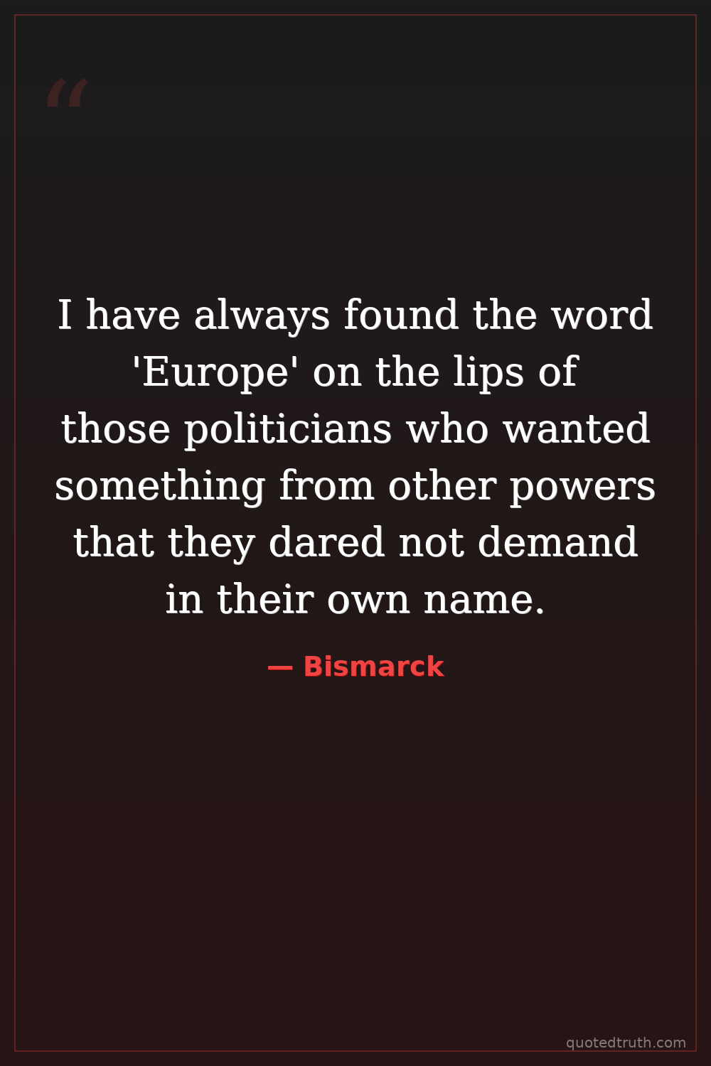 I have always found the word 'Europe' on the lips of those politicians who wanted something from other powers that they dared not demand in their own name.