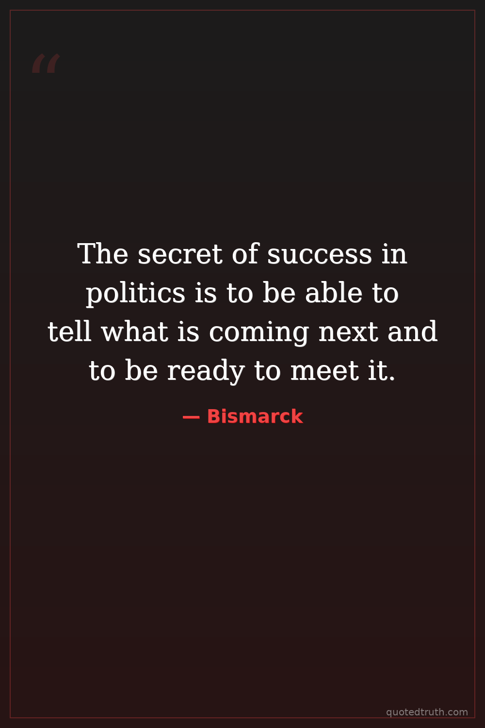 The secret of success in politics is to be able to tell what is coming next and to be ready to meet it.