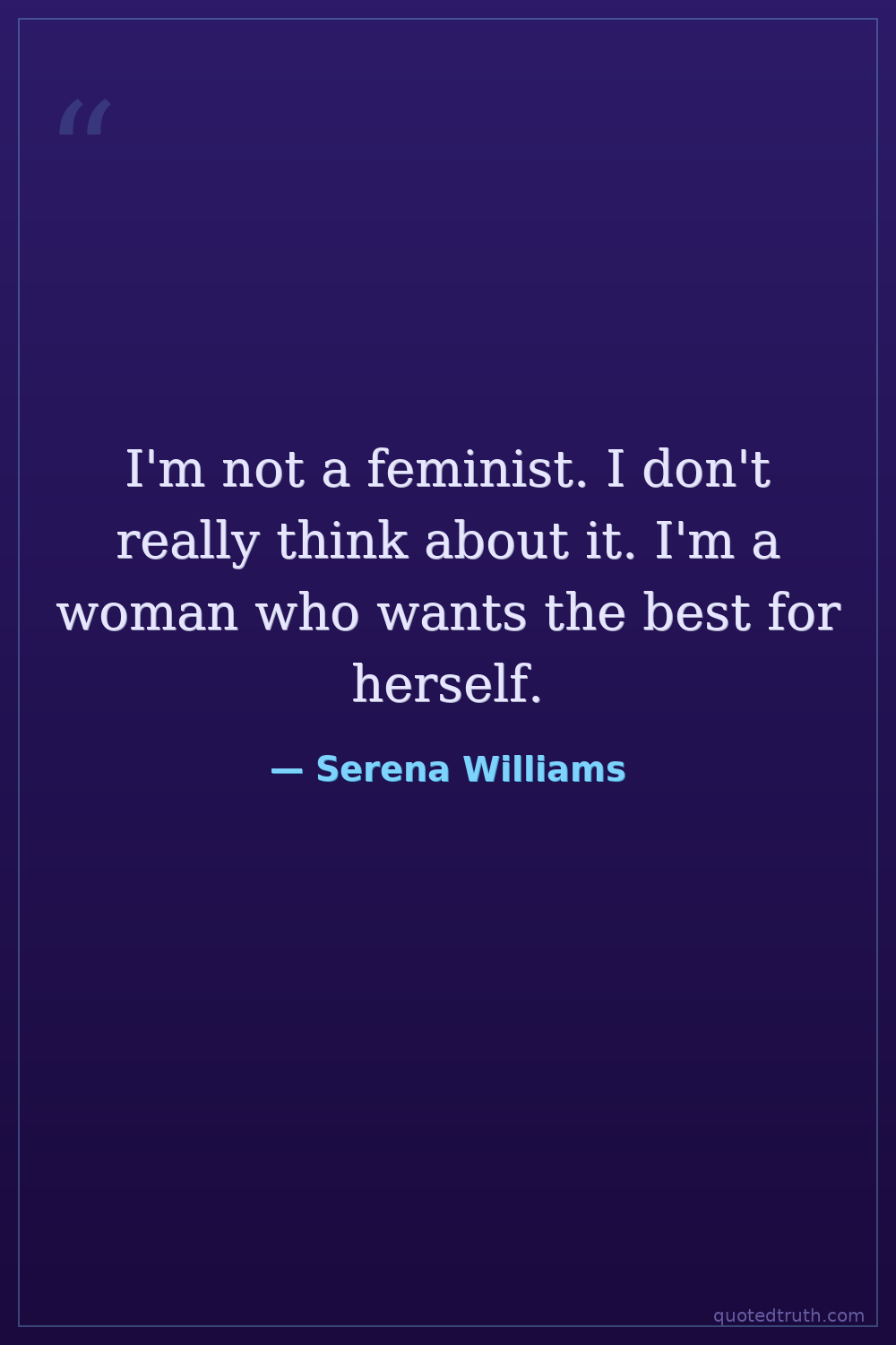 I'm not a feminist. I don't really think about it. I'm a woman who wants the best for herself.