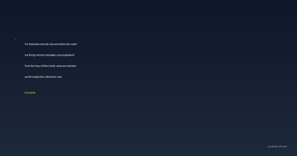 For that some should rule and others be ruled is a thing not only necessary, but expedient; from the hour of their birth, some are marked out for subjection, others for rule.