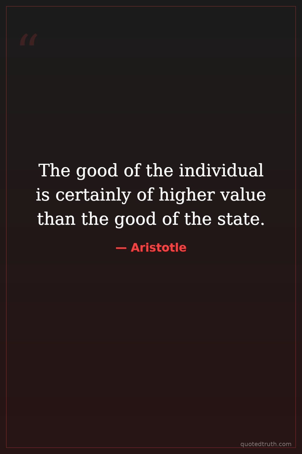 The good of the individual is certainly of higher value than the good of the state.