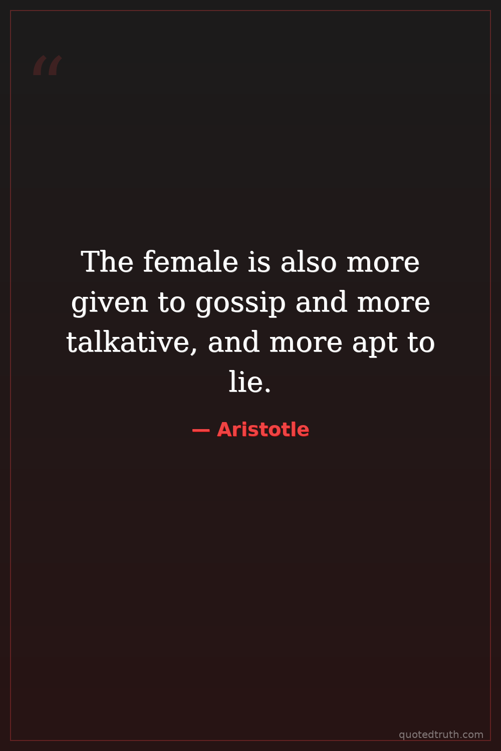 The female is also more given to gossip and more talkative, and more apt to lie.