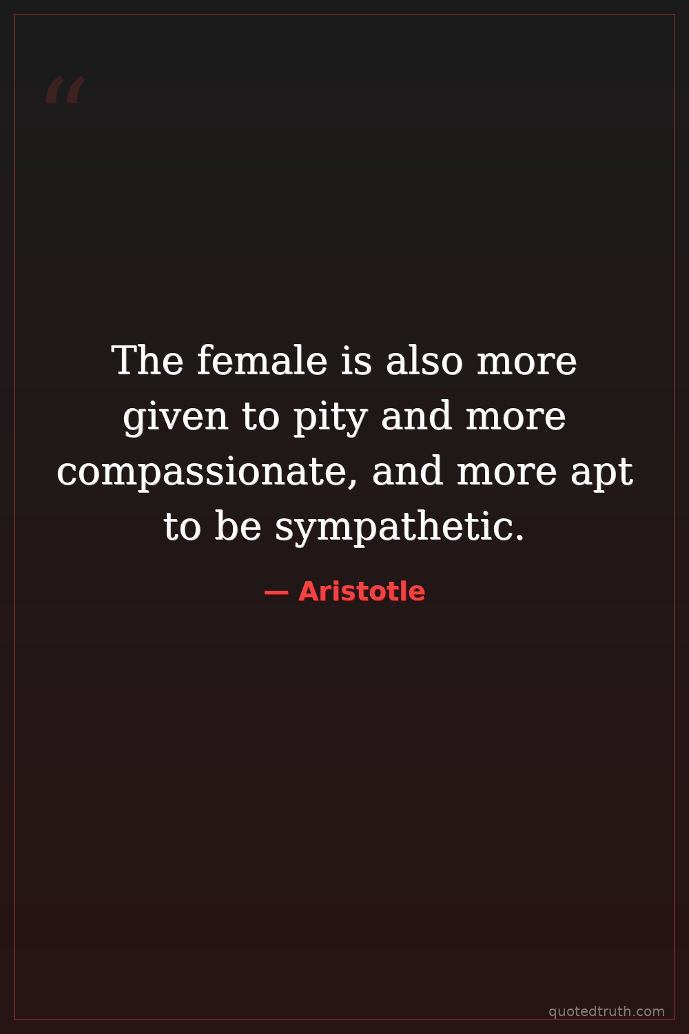 The female is also more given to pity and more compassionate, and more apt to be sympathetic.
