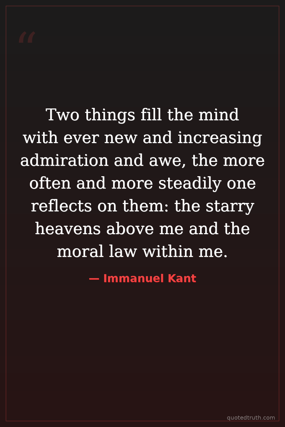 Two things fill the mind with ever new and increasing admiration and awe, the more often and more steadily one reflects on them: the starry heavens above me and the moral law within me.