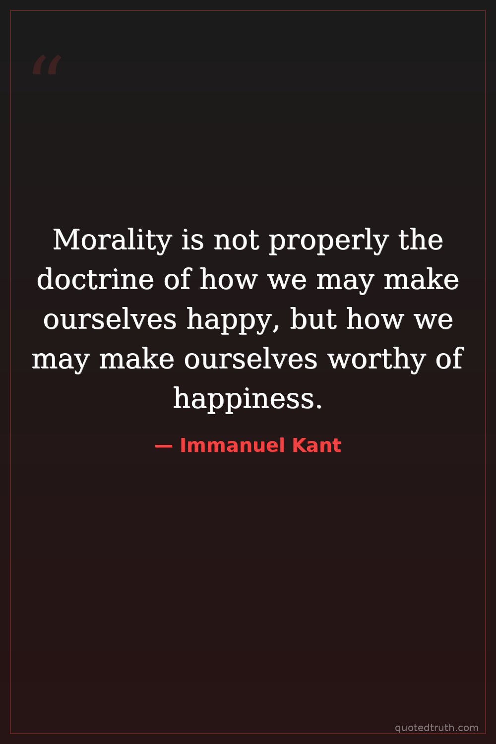 Morality is not properly the doctrine of how we may make ourselves happy, but how we may make ourselves worthy of happiness.