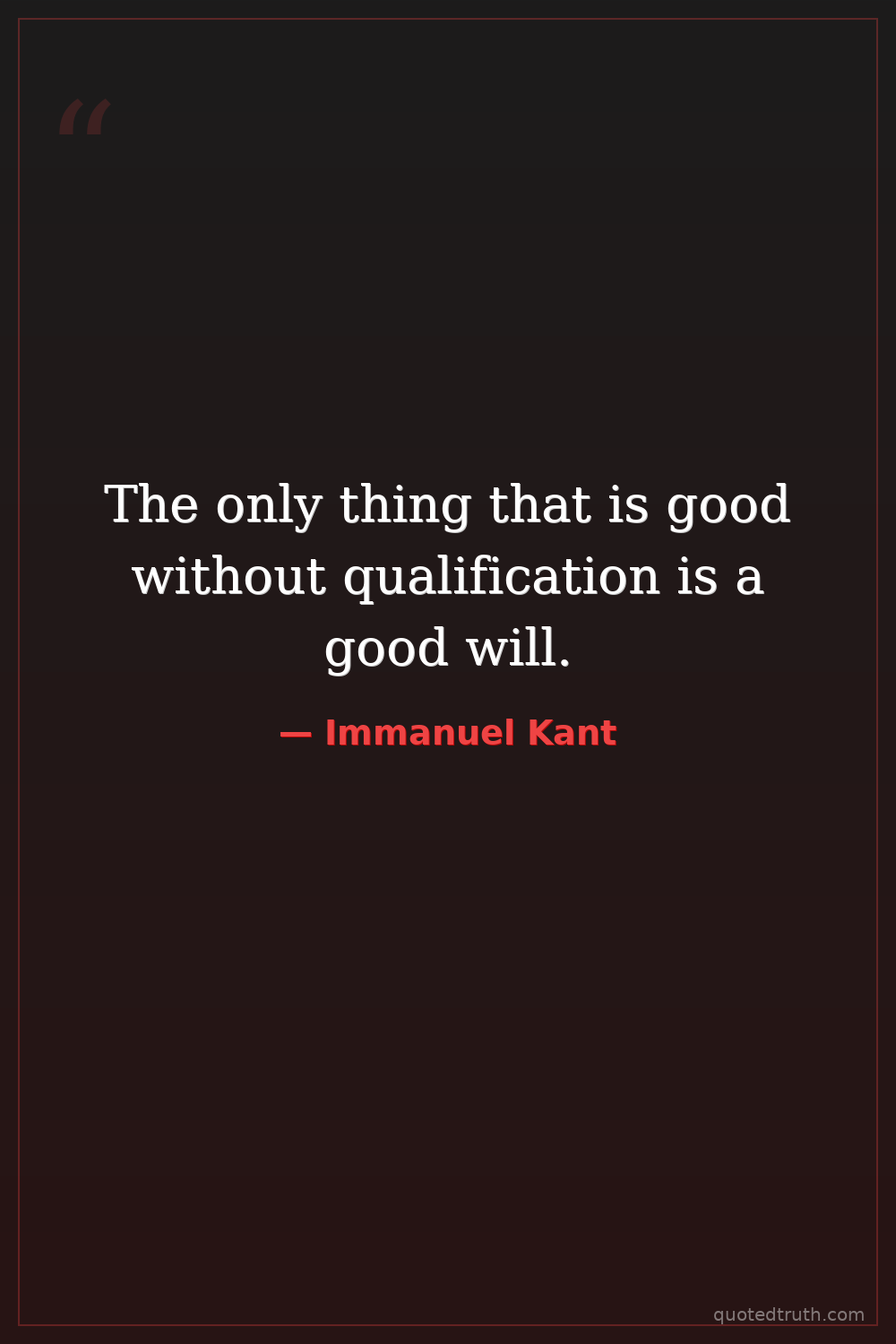 The only thing that is good without qualification is a good will.