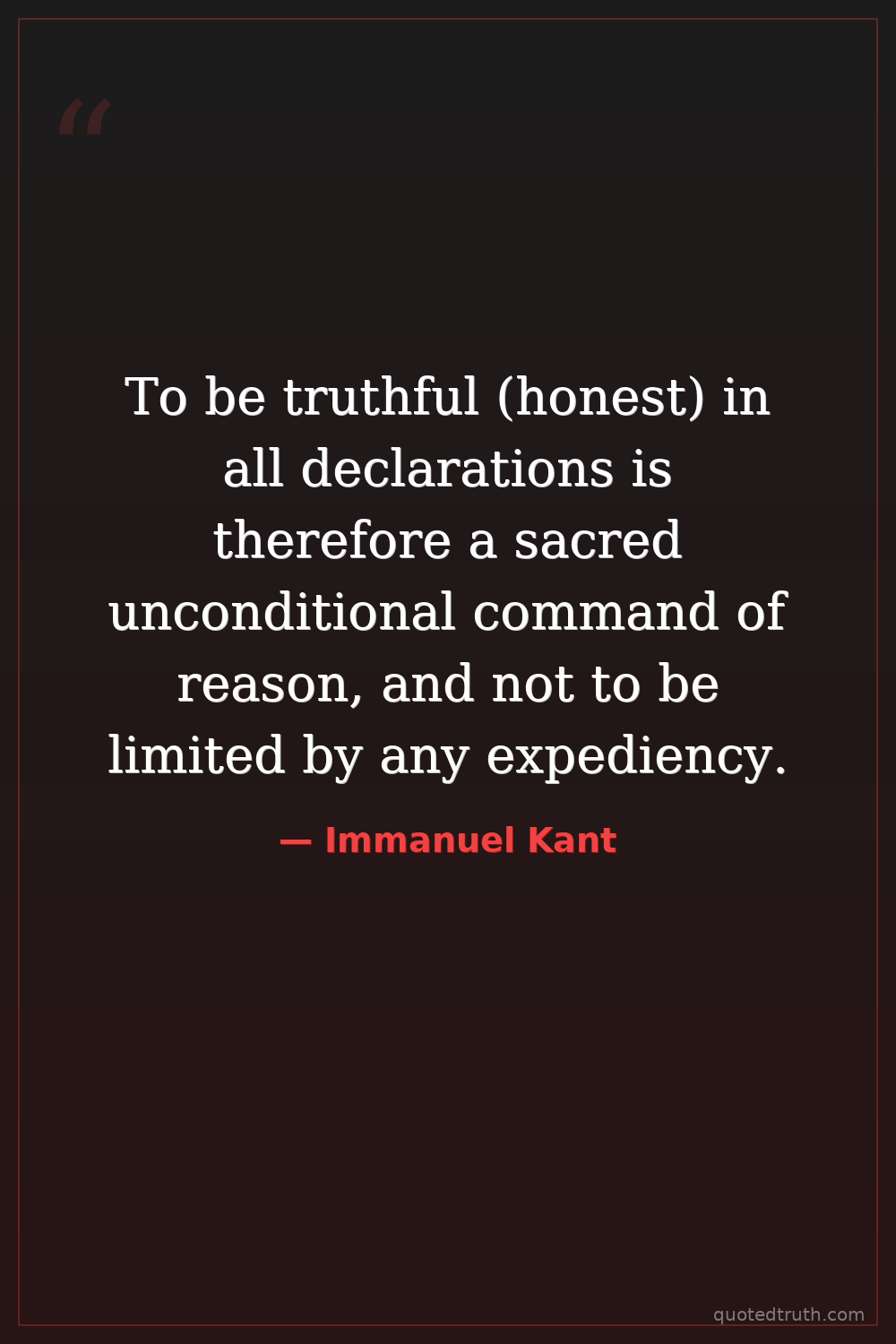 To be truthful (honest) in all declarations is therefore a sacred unconditional command of reason, and not to be limited by any expediency.