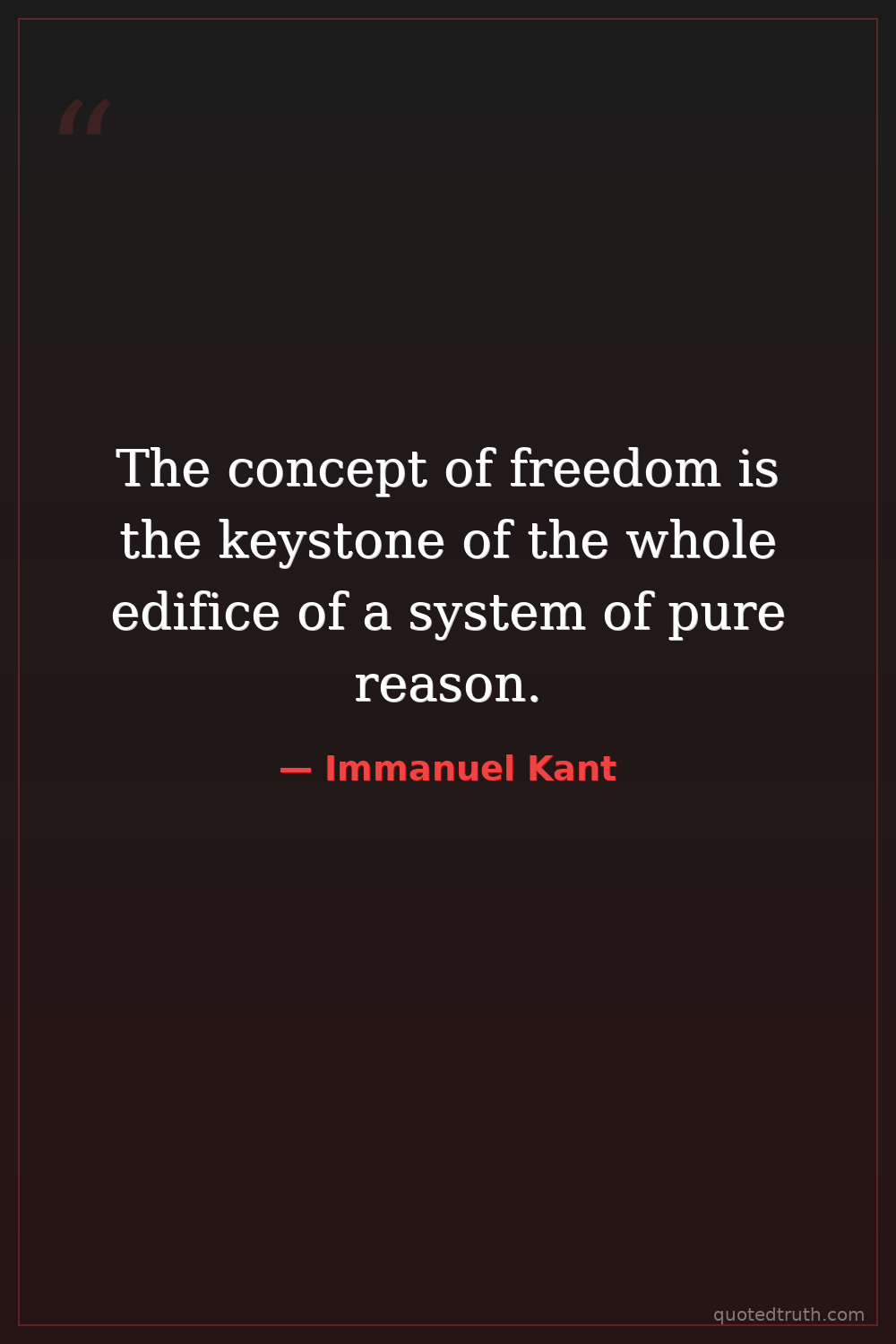 The concept of freedom is the keystone of the whole edifice of a system of pure reason.